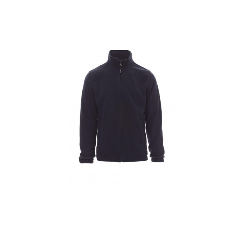 Veste polaire à zip intégral en nylon curseur simple, manches montées, élastiques serre poignet et à la taille, deux poches avec zips couverts, coutures renforcées, bas droit.