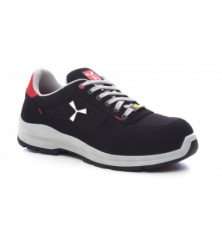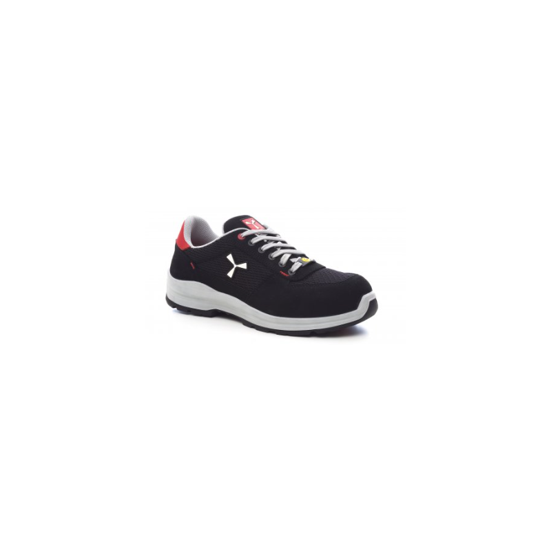 Chaussure de sécurité antistatique basse pour homme, tige en croûte hydrofuge avec inserts en tissu technique respirant, doublure interne (sur toute la surface interne) respirante et résistante à l'abrasion, 6+6 œillets metalfree, insert réfléchissant dans le contrefort, embout en aluminium pressé, orthèse plantaire amovible Ortholite X40 016, semelle en feuille textile certifiée anti-perforation, cambrion anti-entorse, bout dur en fer à cheval, première de montage en polyuréthane ultra-léger, amortisseur MASTER BALANCE en PU polyéther à haute ténacité et densité équilibrée, semelle extérieure XTRAIL GRIP en TPU avec contrefort et bout dur.
