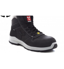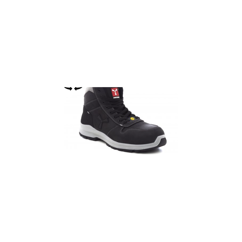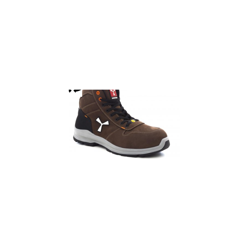 Chaussure de sécurité antistatique moyenne pour homme, tige en cuir hydrofuge et respirant, doublure interne (sur toute la surface interne) respirante et résistante à l'abrasion, 8+8 œillets metalfree, contrefort en grain pampas avec insert réfléchissant, embout en aluminium pressé, orthèse plantaire amovible Ortholite X40 016, semelle en feuille textile certifiée anti-perforation, cambrion anti-entorse, bout dur en fer à cheval, première de montage en polyuréthane ultra-léger, amortisseur MASTER BALANCE en PU polyéther à haute ténacité et densité équilibrée, semelle extérieure XTRAIL GRIP en TPU avec contrefort et bout dur.